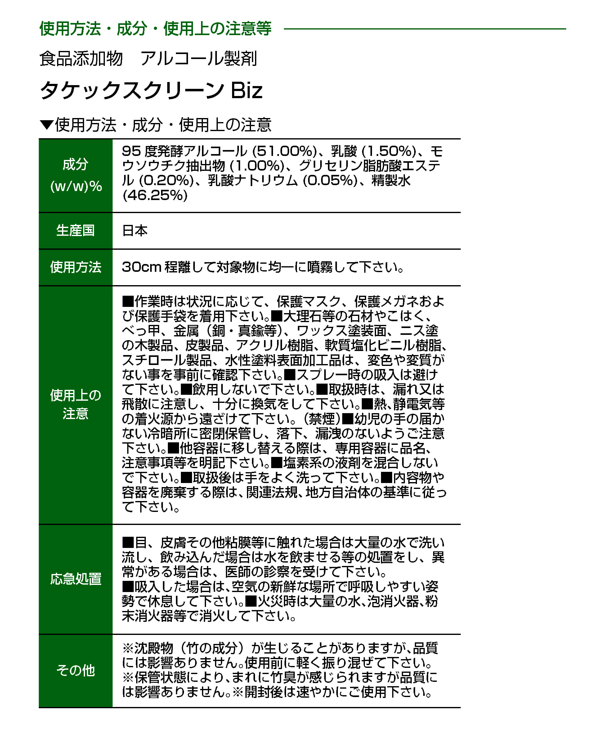 ウイルス・雑菌等に幅広い効果を発揮する『タケックスクリーンBiz』です。